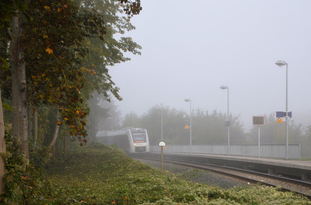 abellio 1648 951 als RB 77 (80553) von Wangen nach Naumburg Ost erreicht am 23.02.2021 den Hp Freyburg.