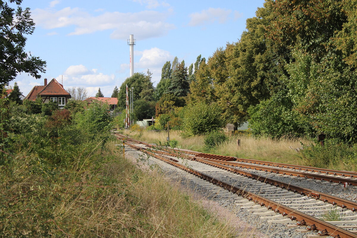 Zugewachsener Blick Richtung Nebra, am 13.09.2025 im Bahnhof Laucha (Unstrut).