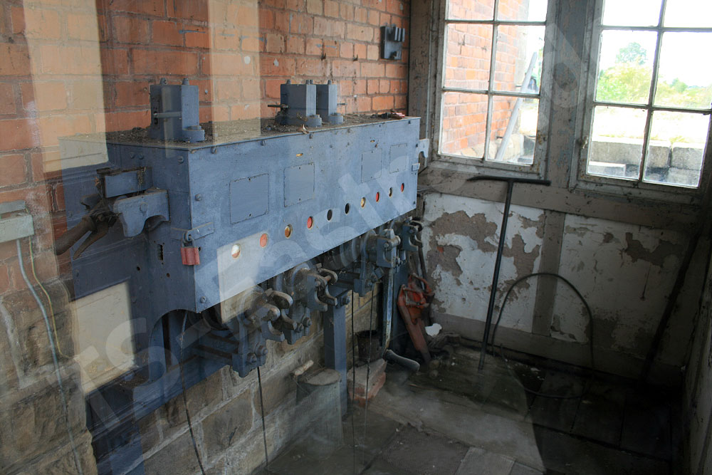Der Stellwerksraum mit dem Jüdel Kurbelwerk am 26.07.2007 im Bahnhof Gehofen (Foto: Mirko Küster)