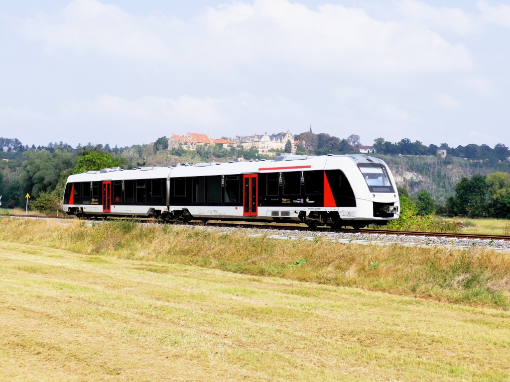 Abellio 1648 422 als RB 80556 von Naumburg (S) Ost nach Nebra, am 19.09.2024 auf der Unstrutbahn bei Zingst. Nach Wangen (U) geht es ab Nebra mit dem Schienenersatzverkehr weiter.