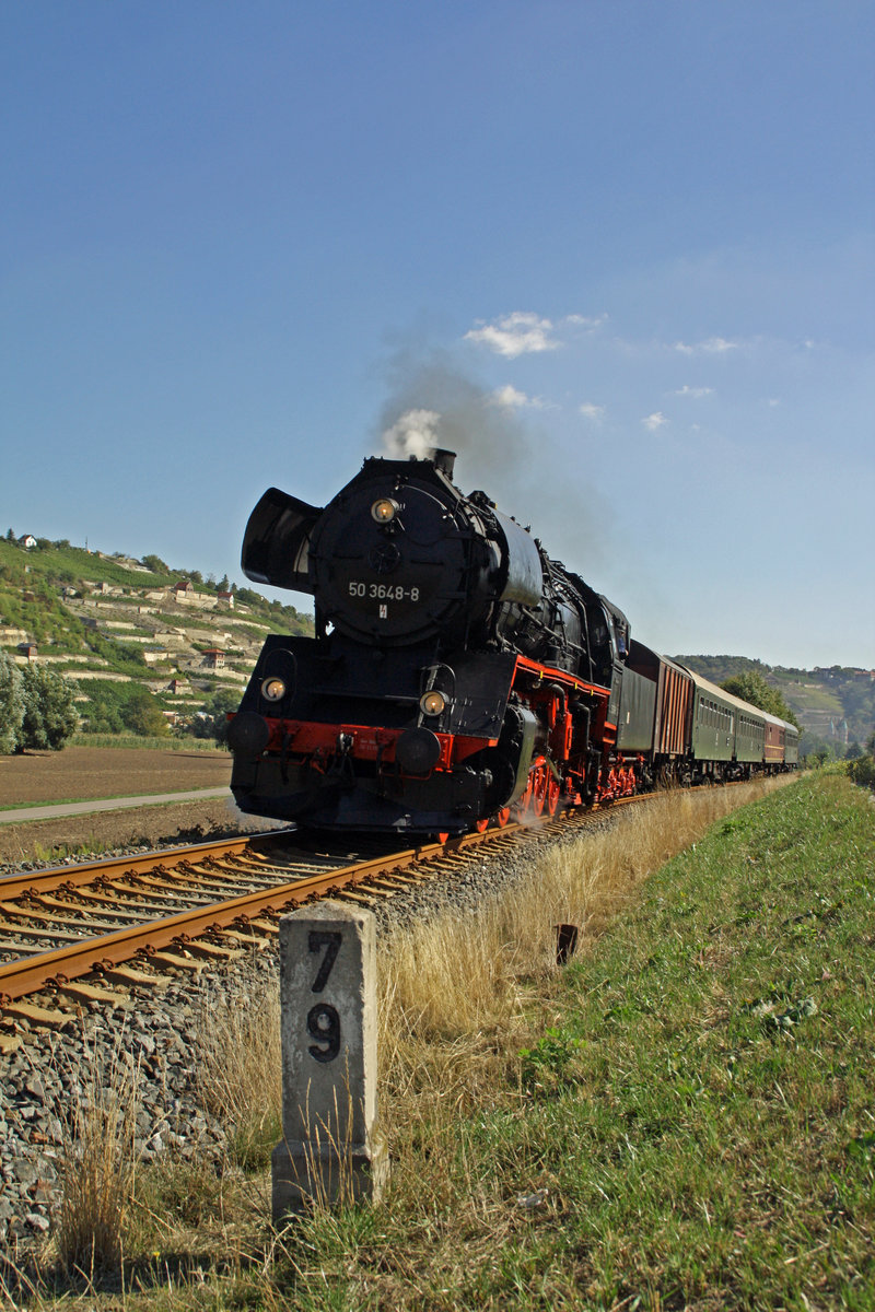 SEM 50 3648-8 mit dem DLr 52363 von Freyburg nach Karsdorf, am 08.09.2018 in Balgstädt. (Foto: Benjamin Wüstemann)