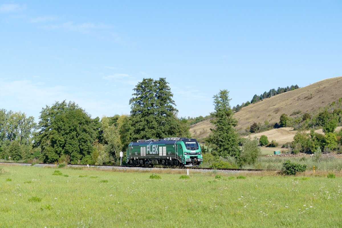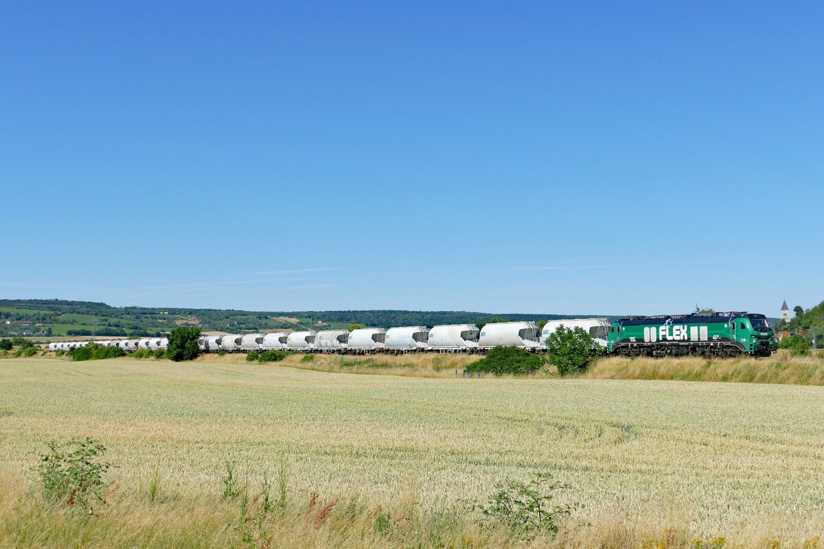 BELog 159 275 mit GATX Eamnos-Wagen Richtung Naumburg (S), am 26.02.2026 auf der Unstrutbahn bei Kleinjena. (Foto: Wolfgang Krolop)