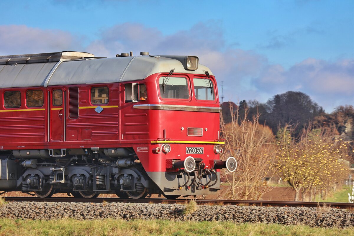 EBS V200 507 am 21.11.2025 auf der Unstrutbahn bei Kleinjena. (Foto: Tom Klötzer)