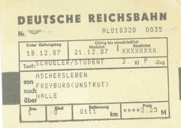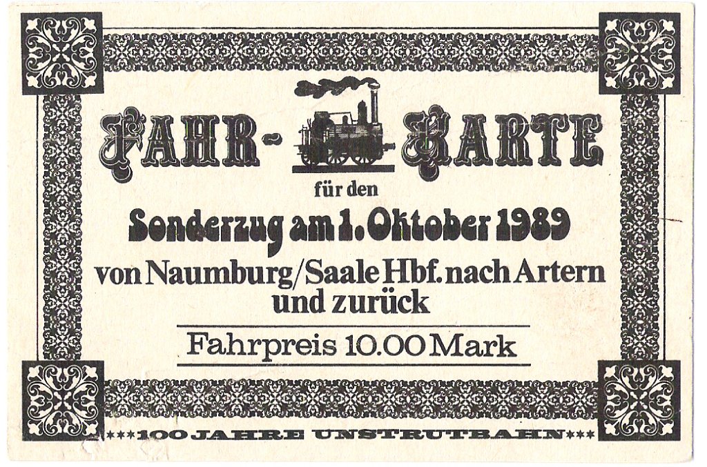Fahrkarte für die Sonderfahrt mit dem TEE von Braunschweig nach Freyburg am 13.09.1997