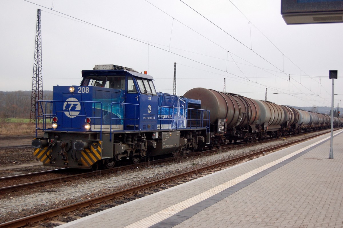 InfraLeuna 210 mit dem DGS 95725 von Großkorbetha nach Karsdorf, am 24.10.2013 beim Kreuzungshalt in Freyburg Bbf. Die leeren Kesselwagen geingen zur Abstellung bei der EBS. (Foto: dampflok015) Frank Thomas