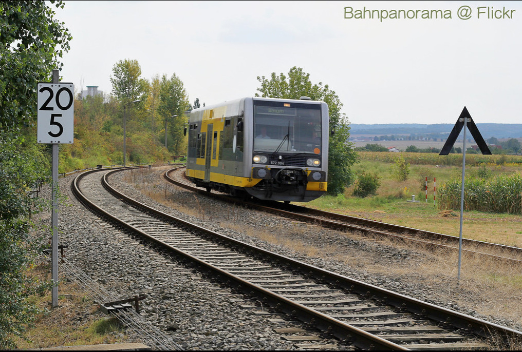 Burgenlandbahn 672 904 als RB von Naumburg (S) Ost nach Wangen (U), am 01.09.2016 in Karsdorf. (Foto: Paul Zimmer)