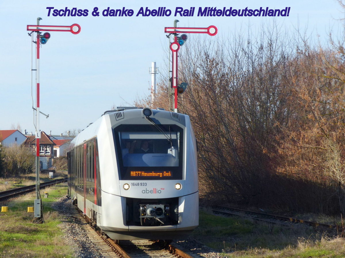 Am 14.12.2024 verabschiedete sich Abellio Rail Mitteldeutschland aus dem DISA-Netz Sachsen-Anhalt und damit auch von der Unstrutbahn. Trotz aller Umstände bedanken wir uns recht herzlich für die gute Zusammenarbeit besonders bei den Sonderfahrten ins thüringische Roßleben. (Foto vom 27.12.2018)