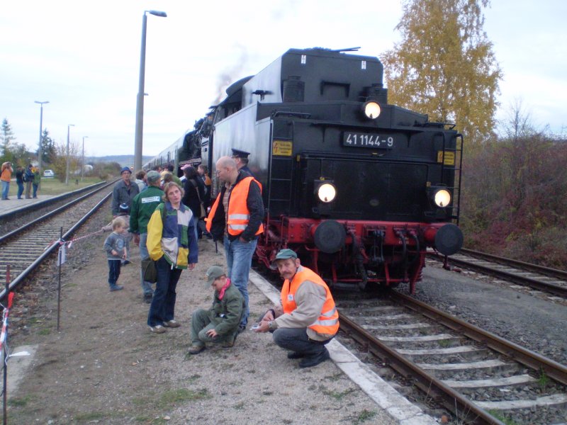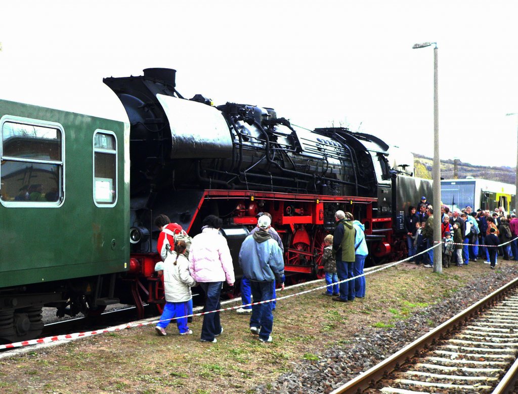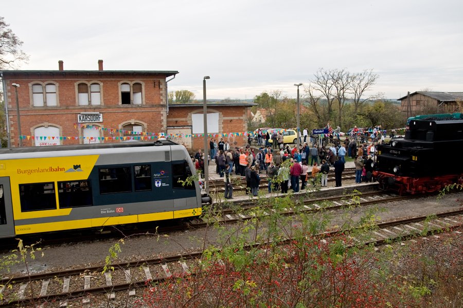 Soviele Besucher hat der Bf Karsdorf selten. Aber die IG Unstrutbahn e.V. und die IGE "Werrabahn Eisenach" e.V. machen es möglich; 26.20.2008 (Foto: Dieter Thomas)
