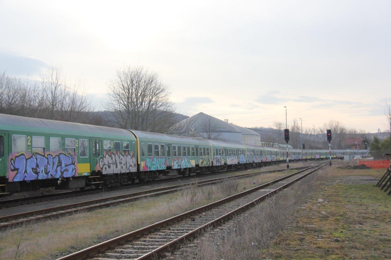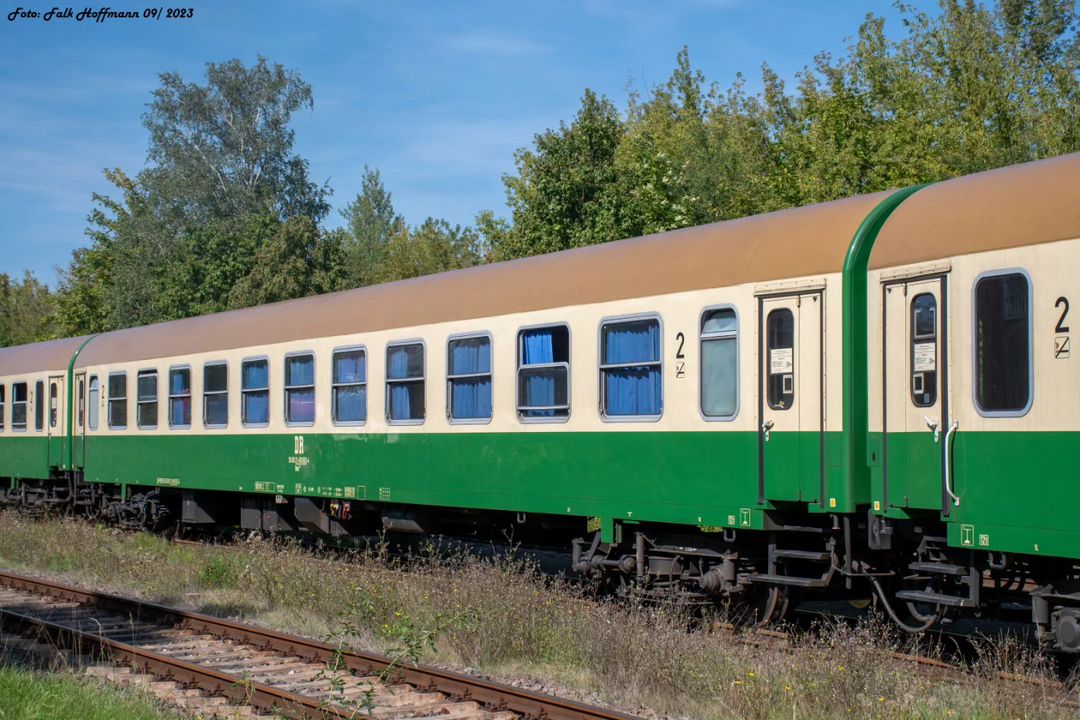Wagenpark vom Lausitzer Dampflok Club Cottbus, in einem Winzerfest Sonderzug aus Cottbus, im Bf Freyburg; 13.09.2008