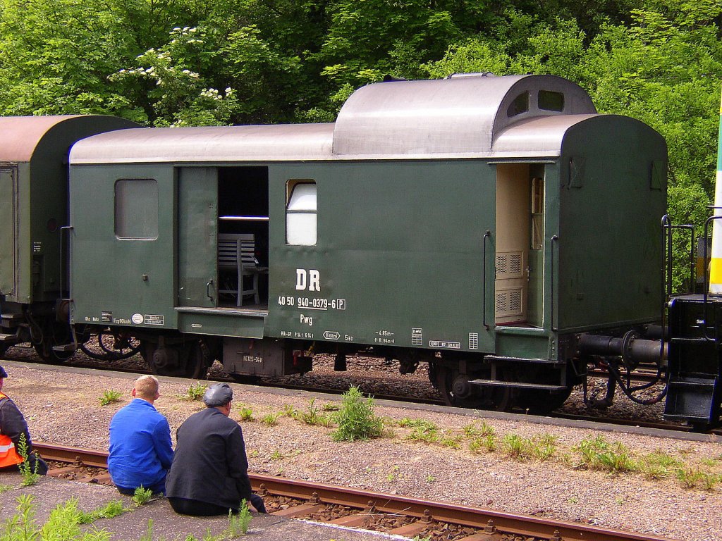 Wohn- und Werkstattwagen der TG 50 3708 e.V. aus Halberstadt, am 08.09.2007 während der Abstellung im Bf Karsdorf. Der Wagen lief in dem Winzerfestsonderzug aus Halberstadt mit.