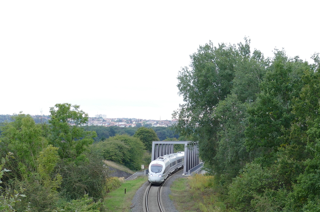 Zuglabor auf dem Heimweg. Der "Advanced TrainLab" 605 017 kommt aus dem Erzgebirge zurück und ist auf dem Weg nach Halle-Ammendorf. Überbauwerk Zangenberg, am 24.09.2021.