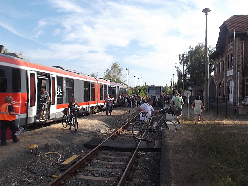 Voller Bahnhof zum Freyburger Winzerfest am 07.09.2013 in Naumburg Ost. Zahlreiche Reisende nutzen die Möglichkeit mit dem Zug von Zeitz aus, mit Umstieg, nach Freyburg zu fahren. (Foto: Thomas Müller)
