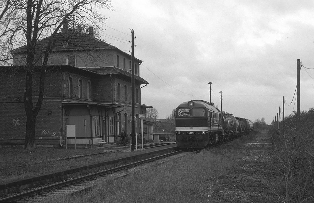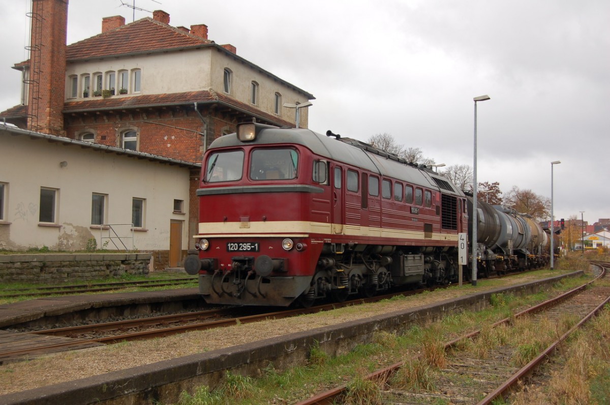 LEG 120 295-1 mit einem Fotogüterzug von Staßfurt nach Nebra, am 12.11.2006 im Bf Roßleben. (Foto: dampflok015)