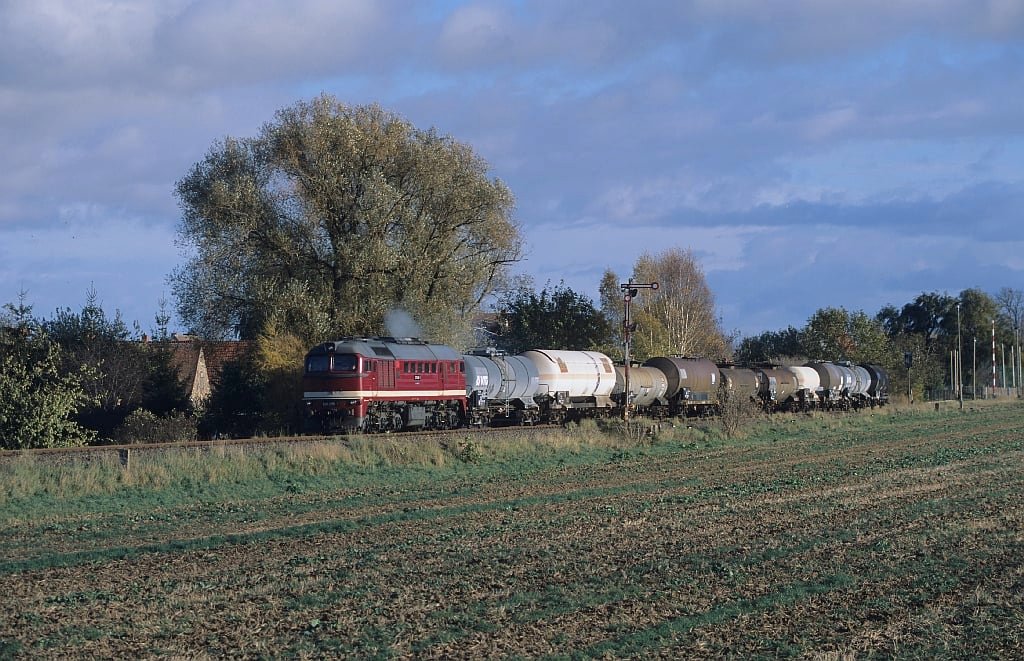 LEG 120 295-1 mit einem Fotogüterzug von Nebra nach Staßfurt nach Nebra, am 12.11.2006 in Nausitz. (Foto: Tino Wäldchen)