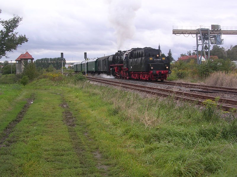 DR 50 3708-0 mit dem Sonderzug aus Halberstadt zum Winzerfest in Freyburg, abgestellt im Bf Karsdorf; 08.09.2007 (Foto: Marcel Grauke)