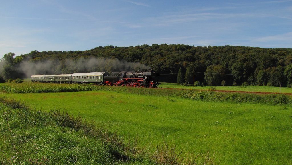 EMBB 52 8154-8 (ex DR 52 4896) mit dem DPE 39135 von Leipzig-Plagwitz nach Karsdorf, bei Kleinjena; 11.09.2010