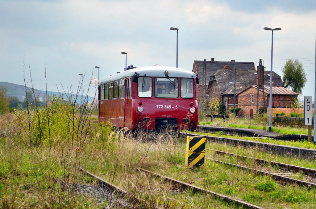 Der 1. "Unstrut-Schrecke-Express" im Jahr 2013 erreicht in Form von EBS 772 345-5 aus Erfurt, am 01.05.2013 Roßleben.