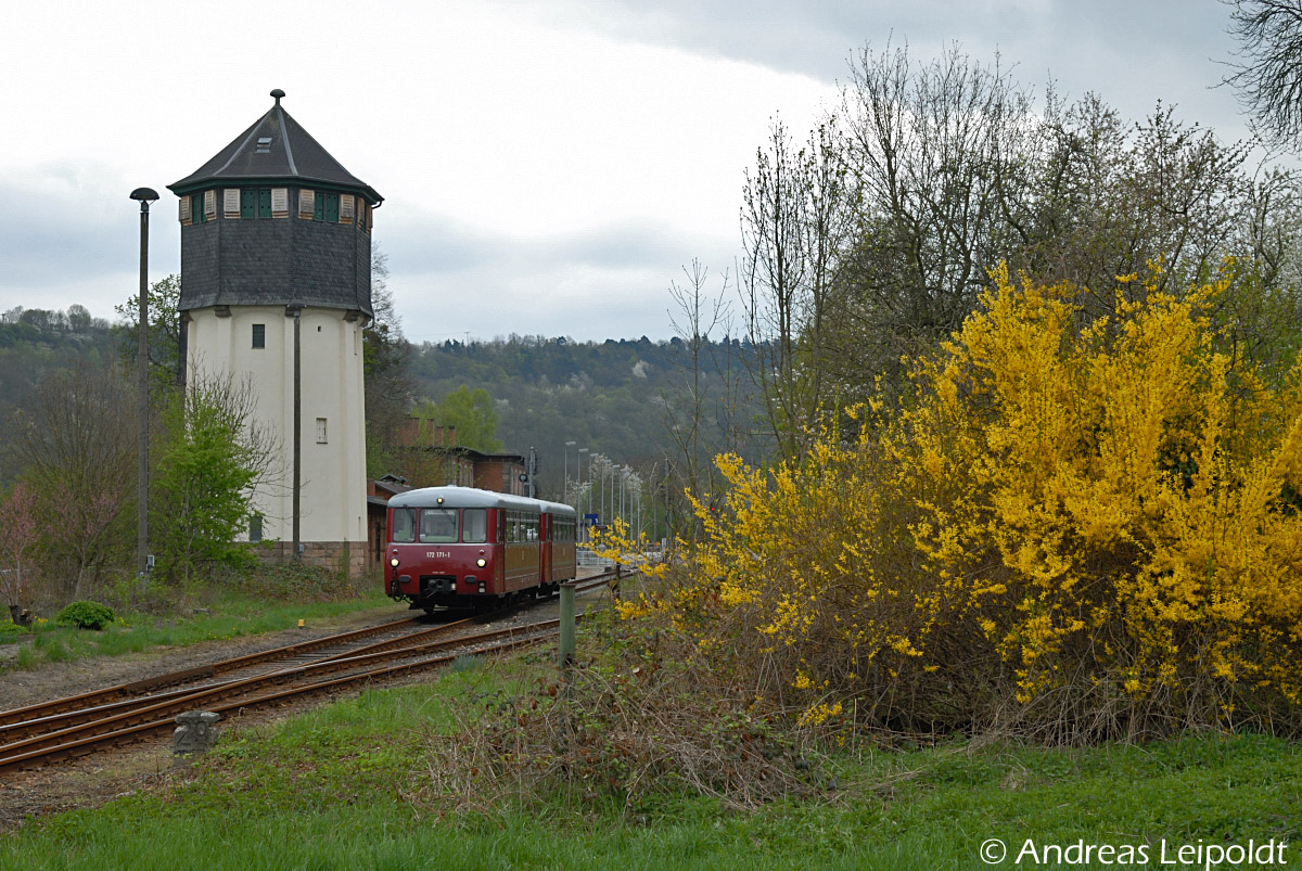 Das Ferkel Duo KSR 172 171-1 + 172 132-3 passiert gerade das Esig vom ehem. Bf Vitzenburg, auf der Rückfahrt von Nebra nach Karsdorf.