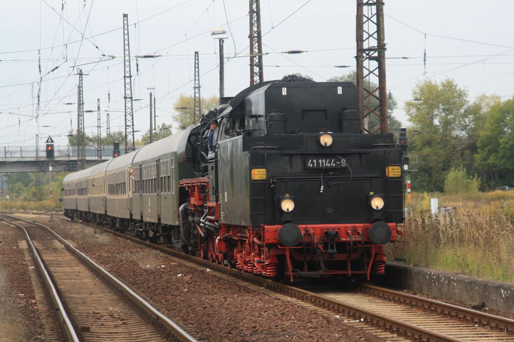 IGE Werrabahn 41 1144-9 mit dem "Rotkäppchen-Express II" von Eisenach nach Freyburg , am 05.10.2013 bei der Ausfahrt in Naumburg. (Foto: Alex Huber)