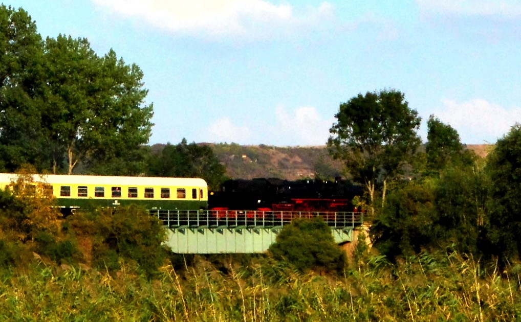 Die 52 8154-8 vom Eisenbahnmuseum Leipzig mit dem DPE 74346 von Leipzig-Plagwitz nach Karsdorf, am 10.09.2016 in Balgstädt. (Foto: Thomas Fritzsche)