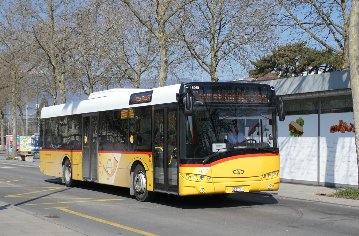 (233'575) - BSW Sargans - Nr. 323/SG 115'486 - Solaris am 8. März 2022 beim Bahnhof Walenstadt