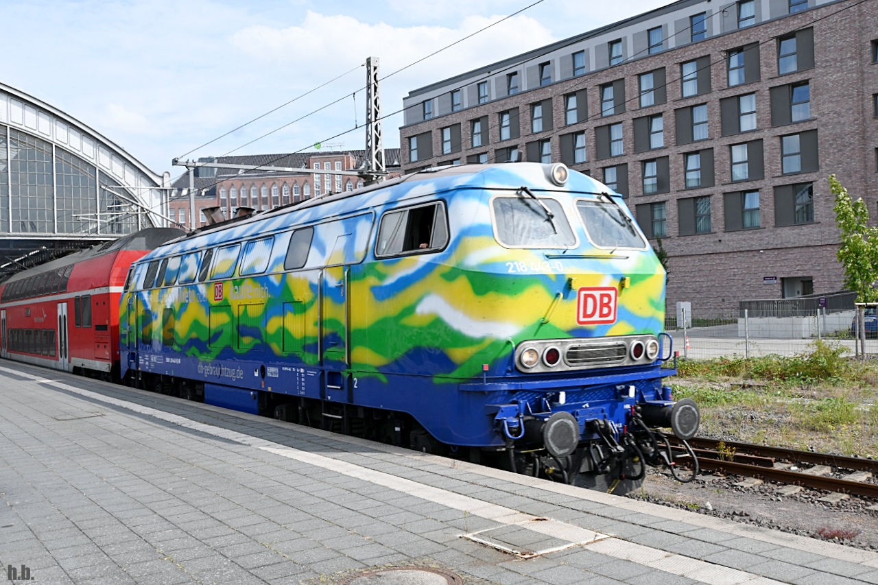 218 392-9 mit dem Messzug abgestellt in Stralsund am 10.9.13