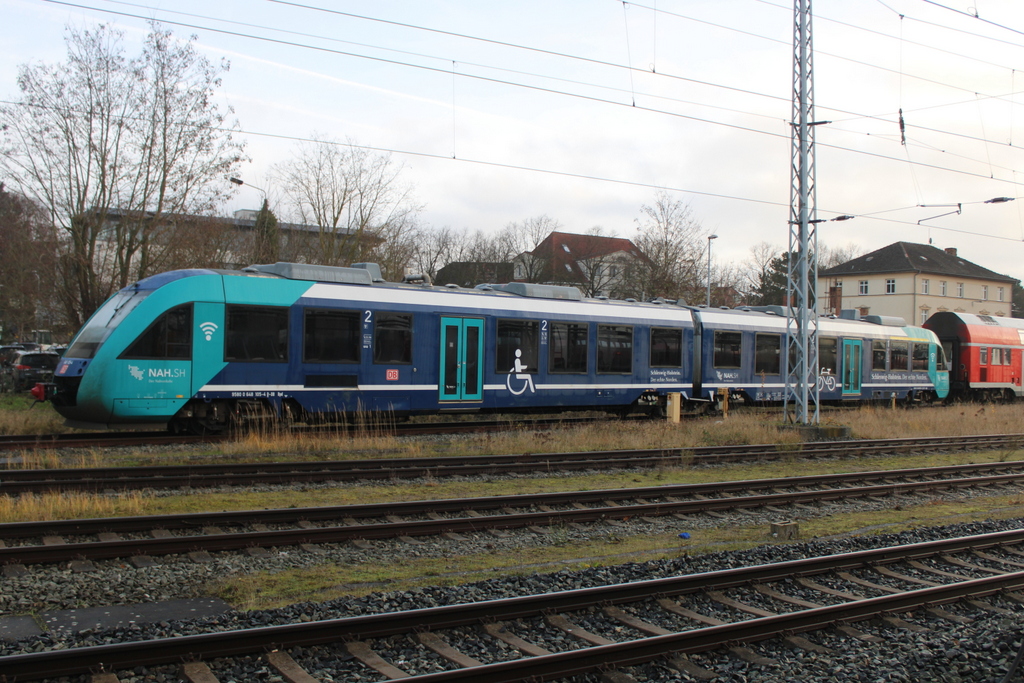 Am 26.04.2015 steht der Alstom Coradia Typ LINT 41 (VT 234) der BRB am Bahnhof Dasing und wartet auf Weiterfahrt in Richtung Ingolstadt.