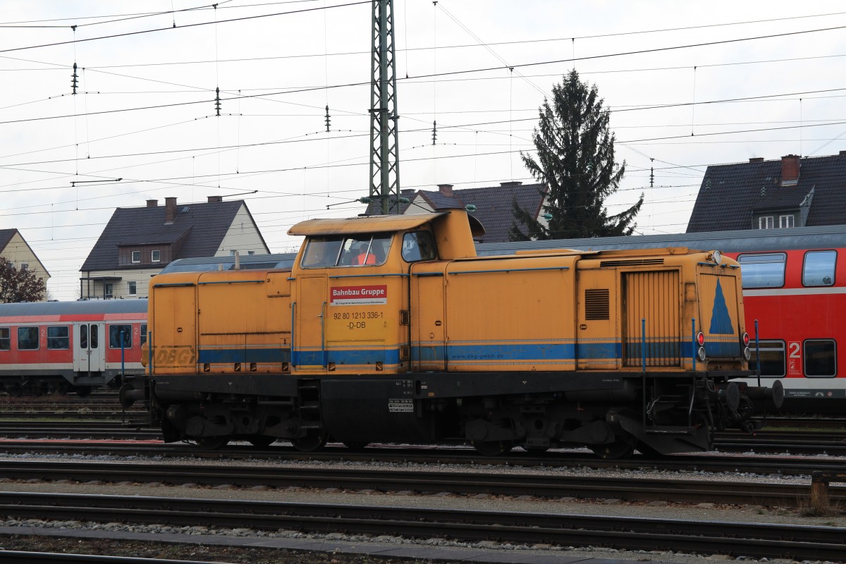 212 306 der "Bahnbau-Gruppe" war am 6. April 2021 mit drei Schüttgutwagen bei Übersee am Chiemsee in Richtung Freilassing unterwegs.