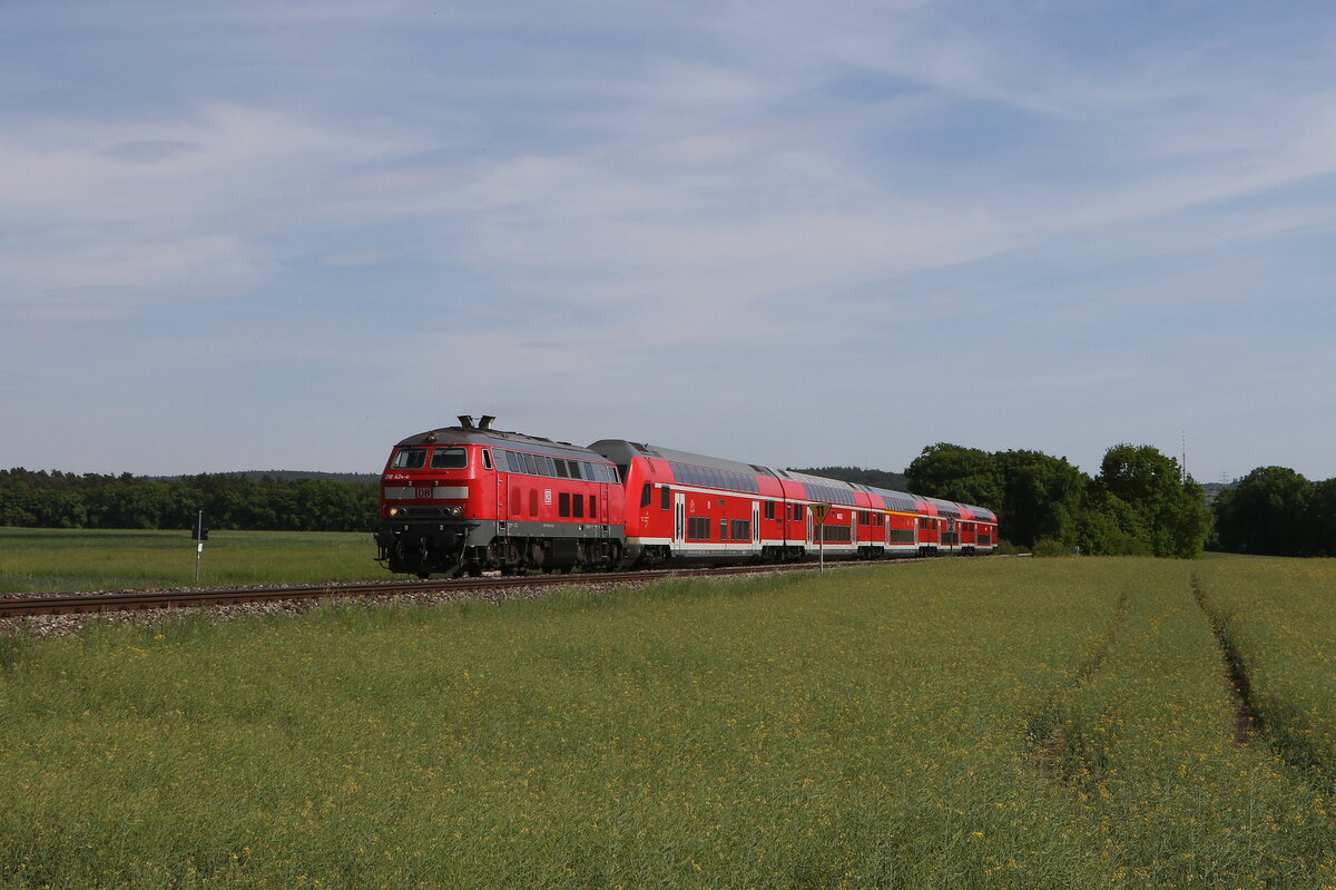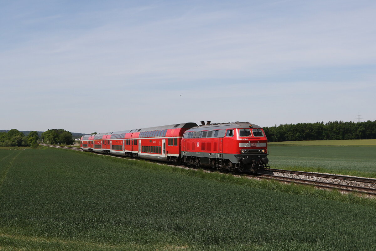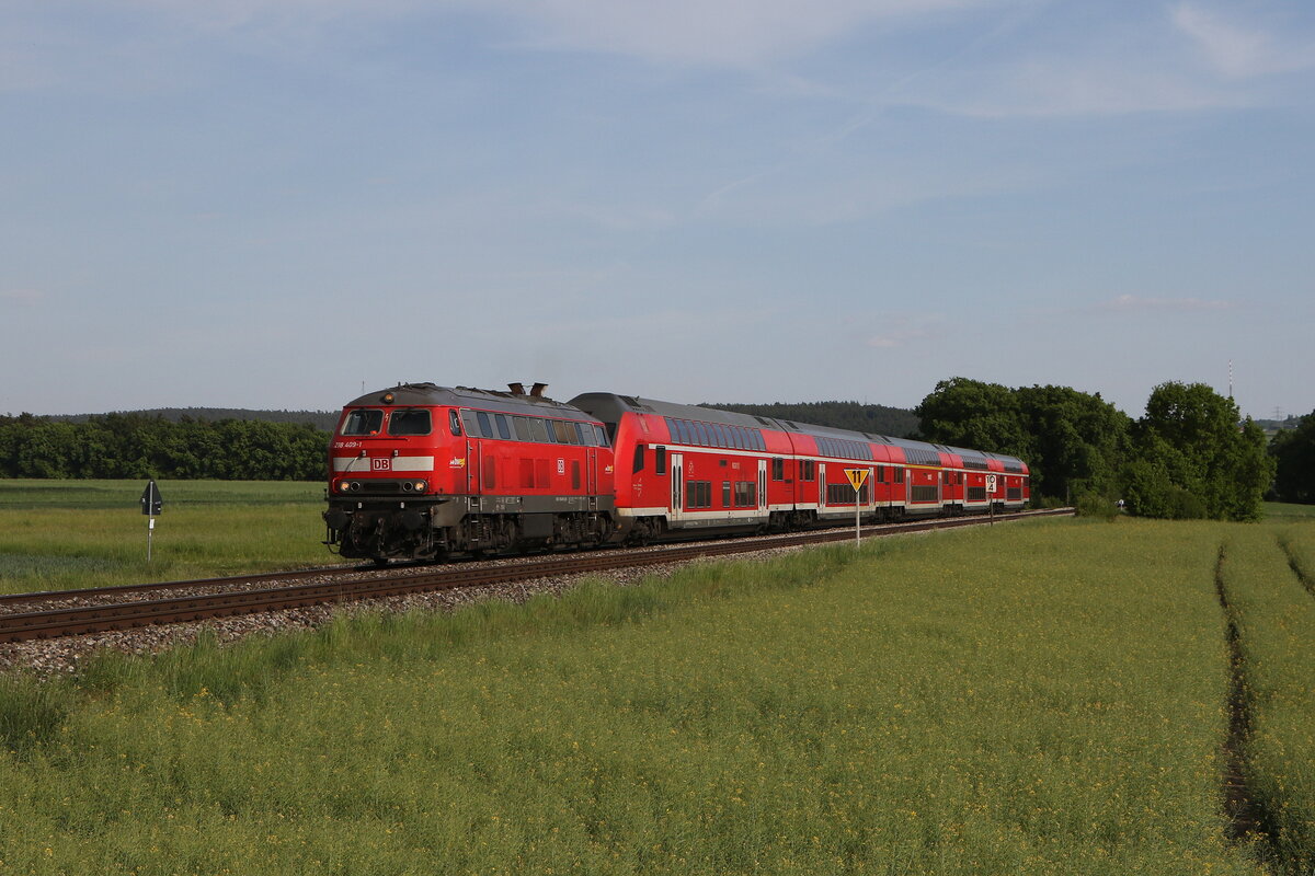 218 366 und 218 xxx mit einem "Sylt-Shuttle" am 28. August 2019 bei Klanxbüll.