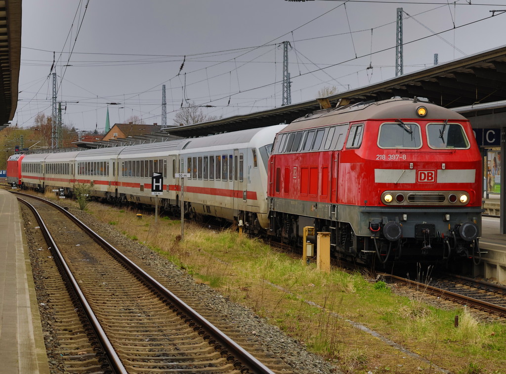 MEG 304 (218 390-3) mit einer Überführung, bestehend aus 234 242-6, Tz 5512, 5515, 5508 und 234 278-0. Ziel der Überührung ist Mukran! Tostedt den 13.12.2016