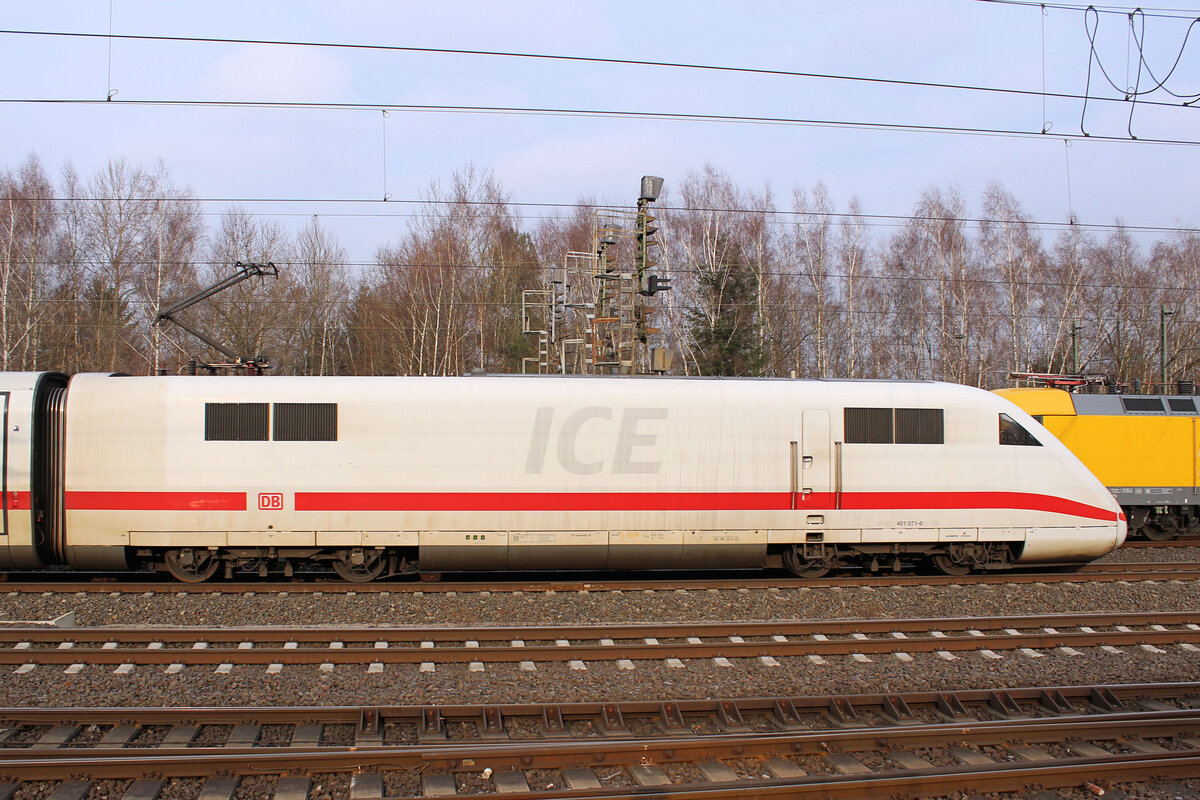 146-06 wird während der Ausfahrt aus den Tostedter Bahnhof von einen ICE überholt. Datum: 31.07.2023
