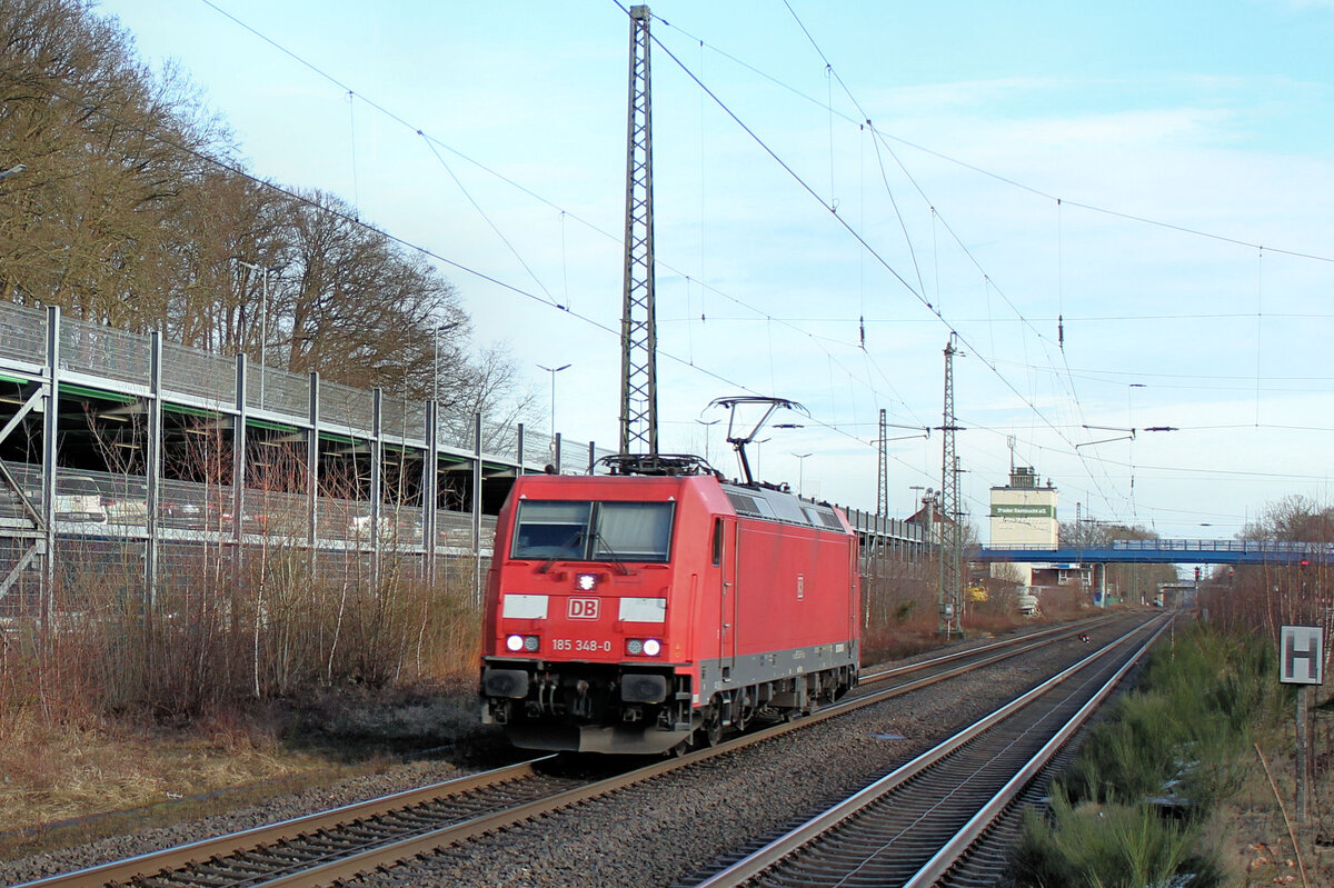 Mit dem Gipszug stand die HSL 185 602,am 01.April 2017,in Stralsund Rügendamm.