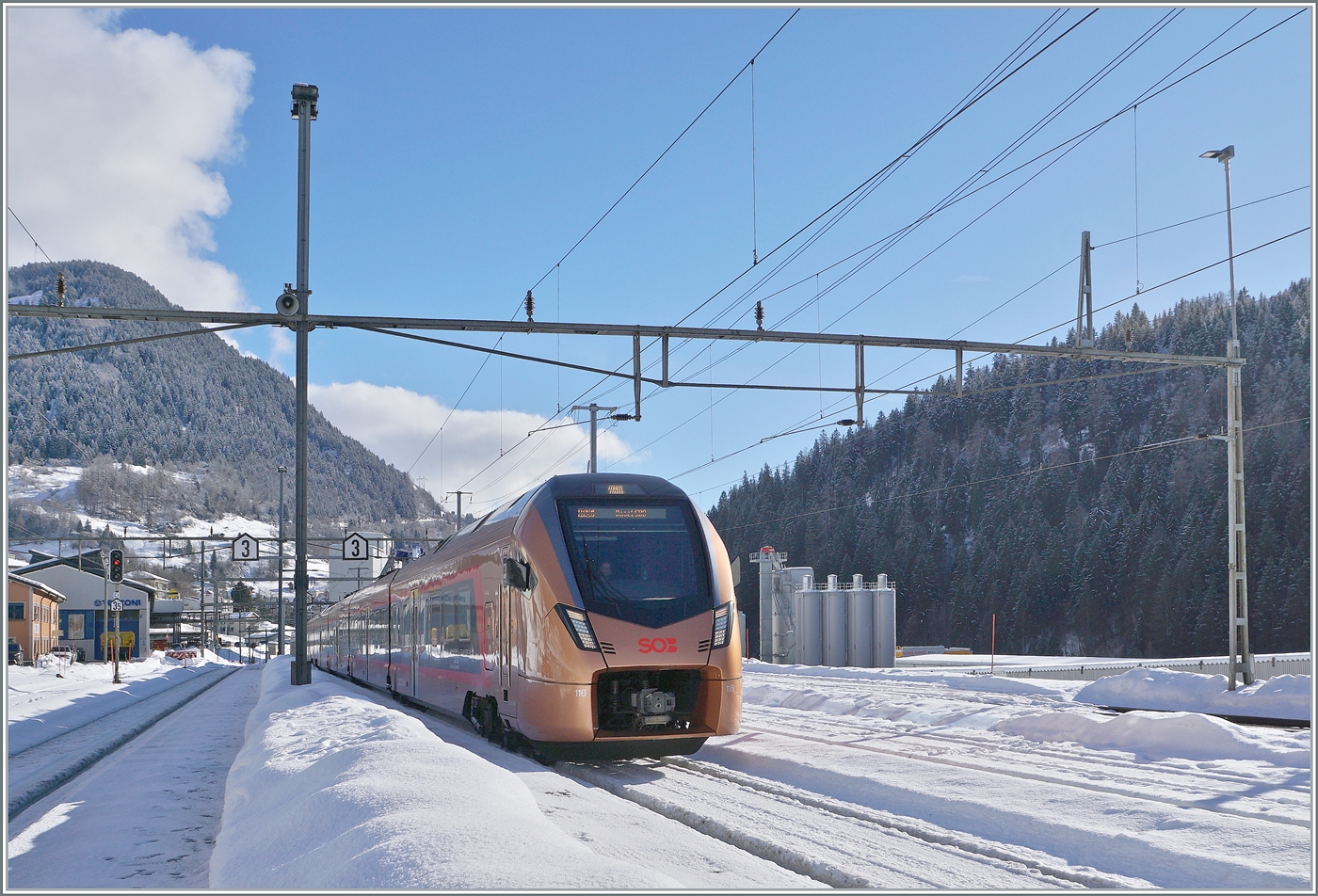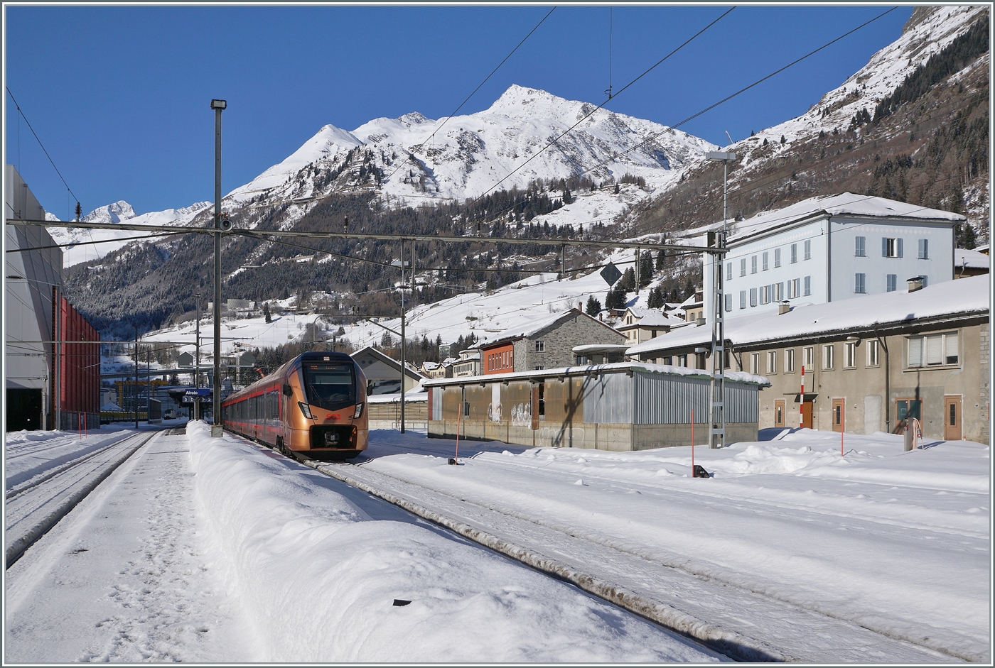 Ein SBB Re 460 fährt mit einem IC2 auf dem Weg in Richtung Arth Goldau durch den Bahnhof von Wassen.