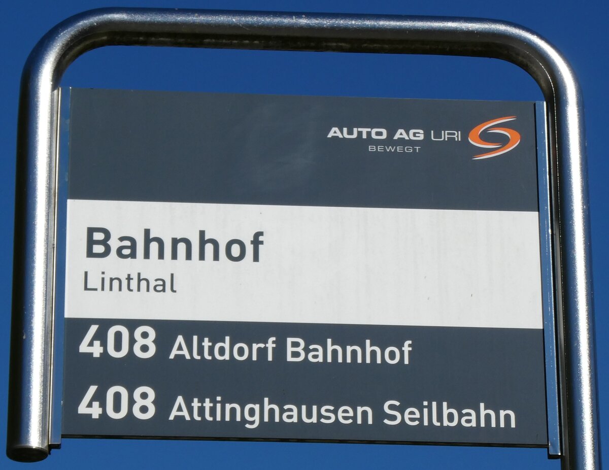 (226'787) - PostAuto-Haltestellenschild - Linthal, Bahnhof - am 25. Juli 2021