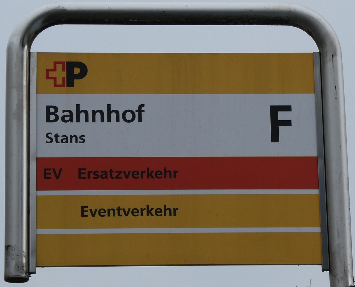 (284'603) - +P-Haltestellenschild - Stans, Bahnhof - am 3. Februar 2026