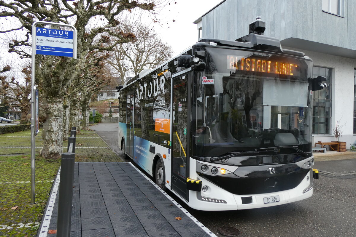 (282'764) - TGA, Arbon (Eurobus) - TG 686 - eKarsan am 5. Dezember 2025 beim Bahnhof Arbon