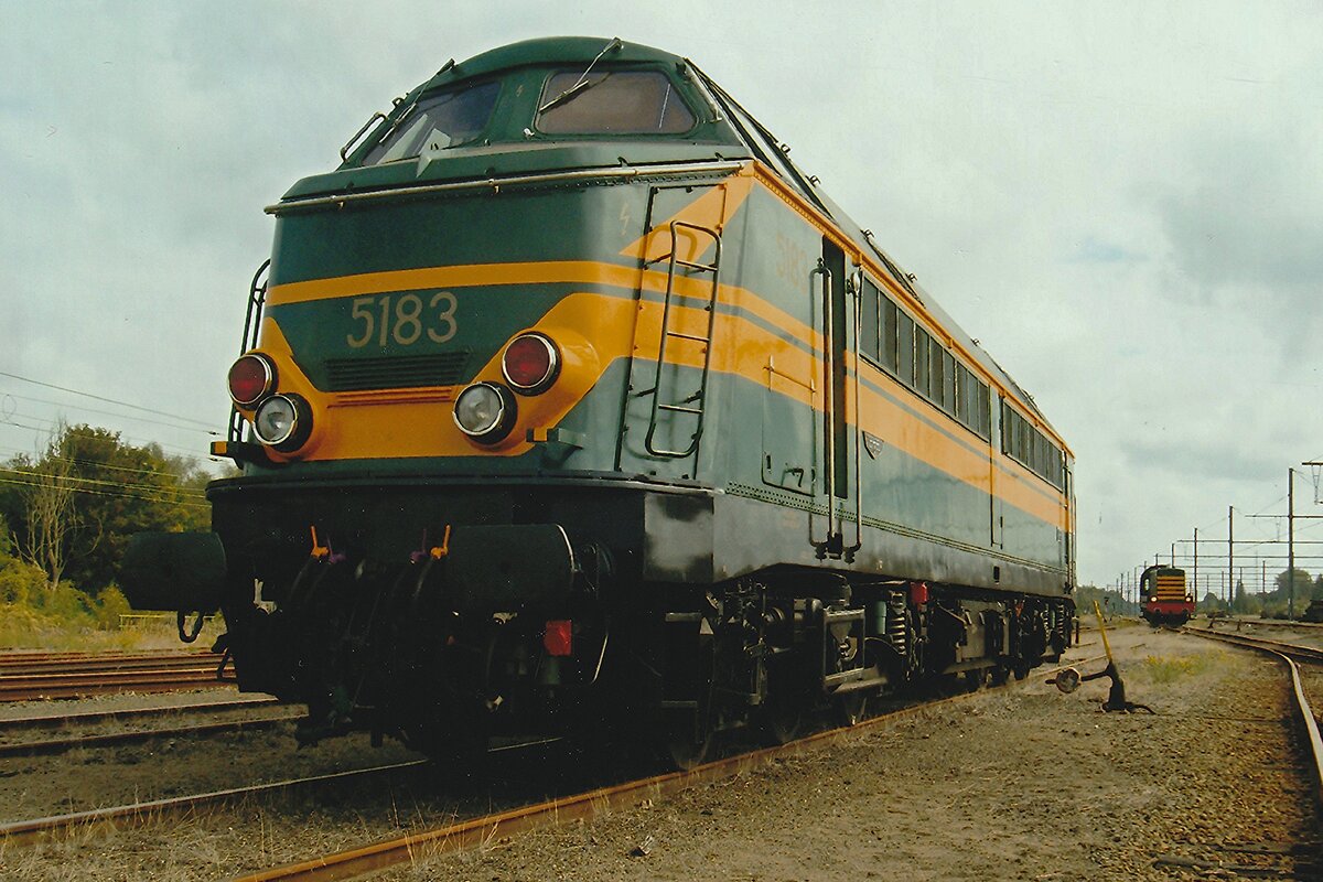 Leider existiert dieser maskerade nicht mehr. Ex-NMBS 5117 wurde in 2009 umgezaubert in 5001, eine Testdiesellok aud die 70er jahre, womit die NMBS versuchte, eine 140 km/h schnelle Diesellok bereit zu stellen. Pannenreihen und die vortschreitende Elektrifikation beschränkte die Ära des 5001s auf nür wenige Jahre und die 5001 wurde 1978 zurückgebaut. Die PFt-TSP baute 2009 deren 5117 in die 5001 Blauwe Vogel (Blauer Vogel) um, aber auch dieser Lok könnte sich nicht durchhalten und wurde Ende 2017 verschrottet. Hier steht der Quasi 5001 am 12 September 2009 ins Bw Saint-Ghislain. Leon Schrijvers