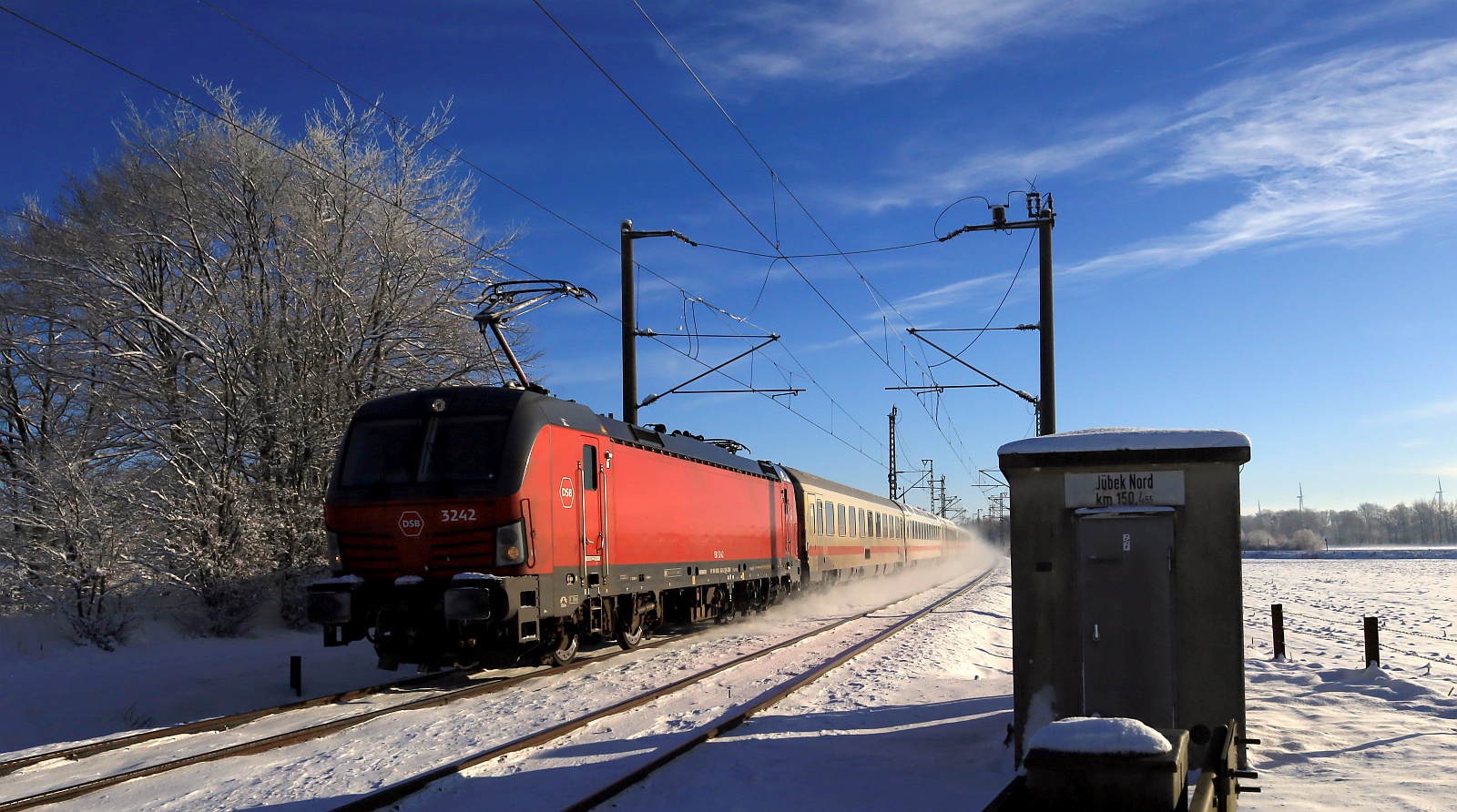 DSB Litra EB 3201 mit dem IC 383 nach Hamburg. Ausfahrt Pattburg/DK 15.12.2023