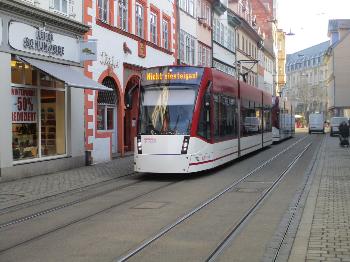 Tw 722 auf Leerfahrt durch die Erfurter Innenstadt,am 22.Januar 2026.
