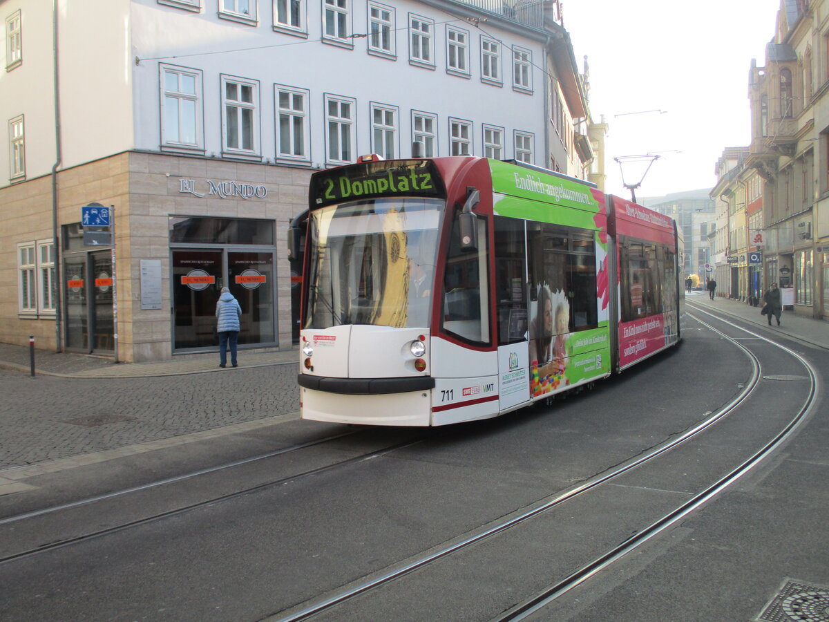 Vom Anger kam die Erfurter Straßenbahn Tw 711,am 22.Januar 2026.