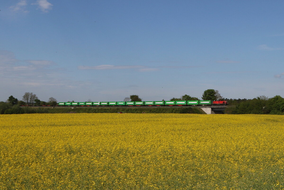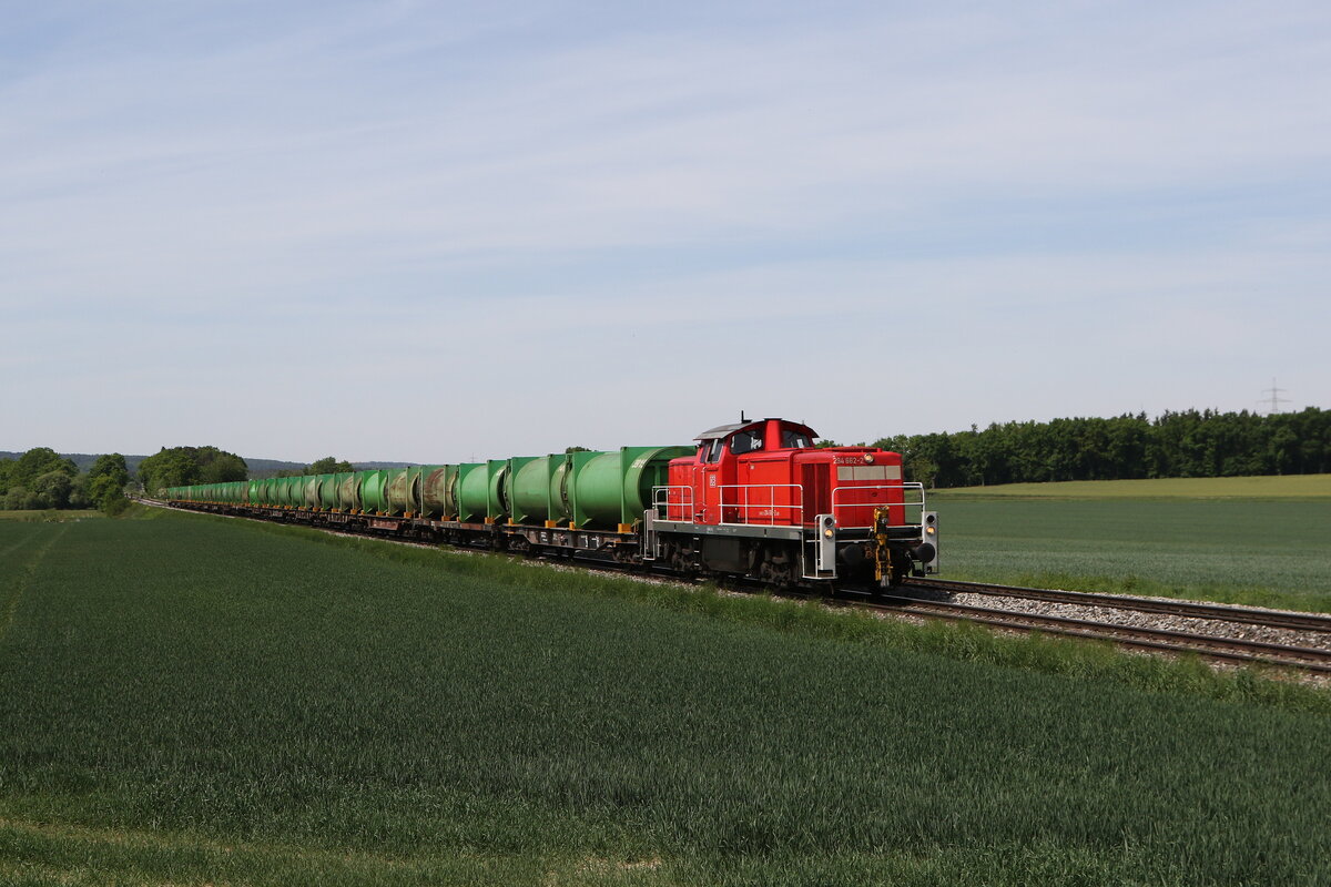293 010-5 mit einem Bauzug am 14. Mai 2015 bei Harrbach am Main.
