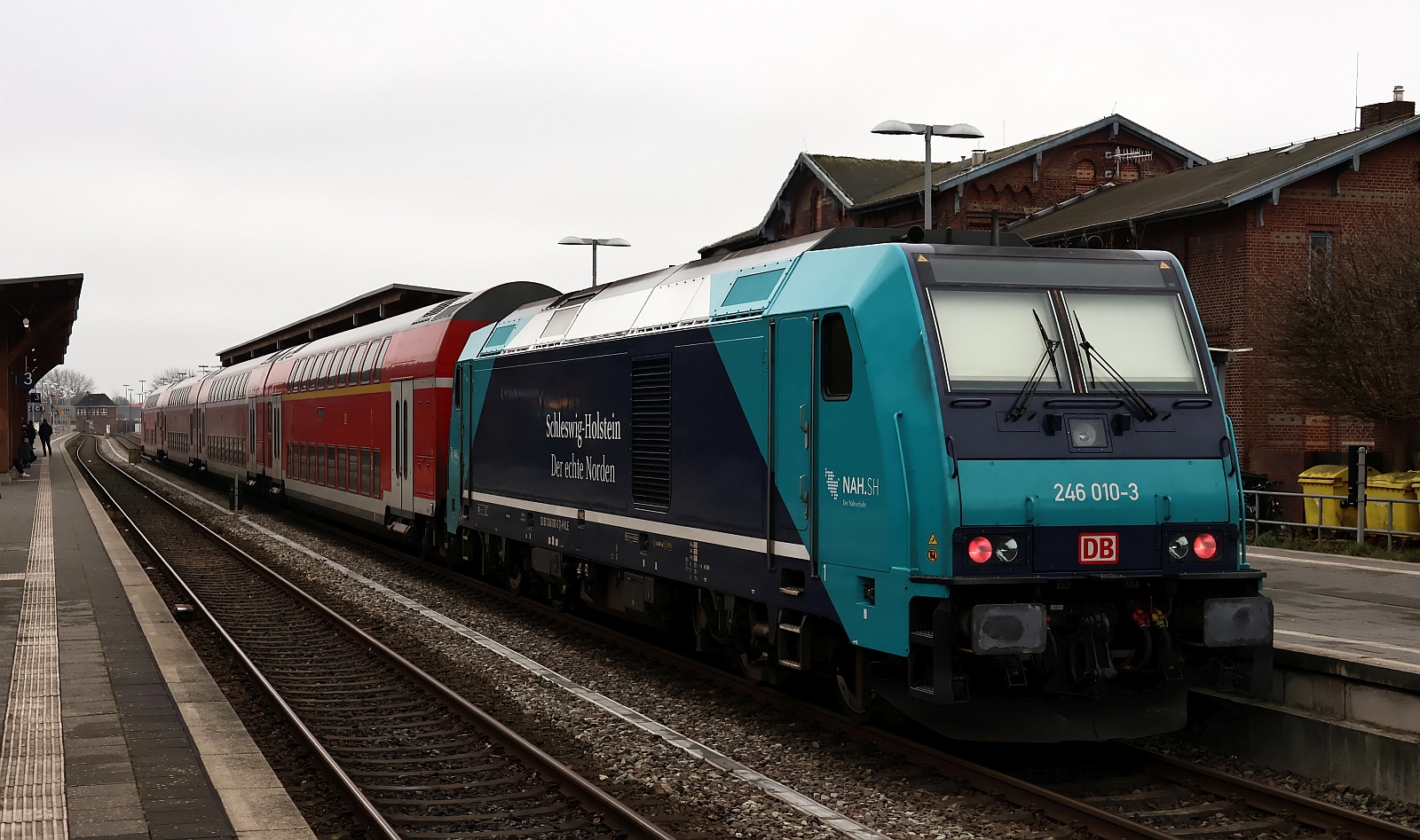 HVLE/NAH.SH/DB 246 010-3 REV/ITL Bw Pirna/17.04.24 als Schublok eines RE 6 nach Hamburg. Ausfahrt Niebüll 28.09.2025 I