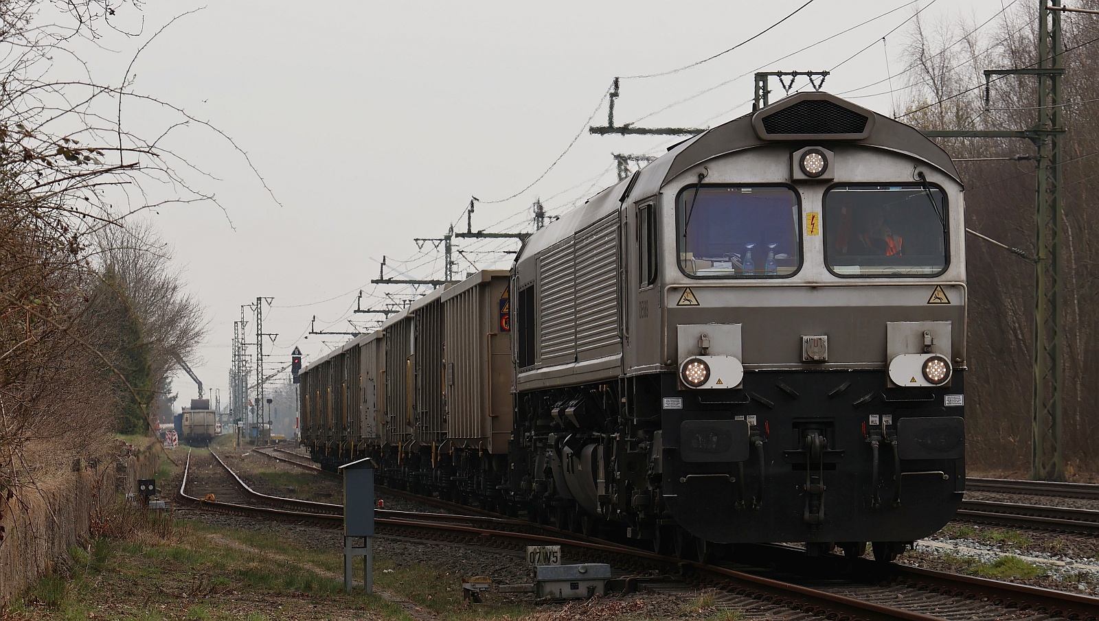 266 070-2 der HGK(Beacon Rail Leasing Limited)steht hier zusammen mit einer weiteren Class 66 in Hamburg-Wilhelmsburg abgestellt. Die Aufnahme entstand vom S-Bahnhof gegenüber aus. 05.07.12