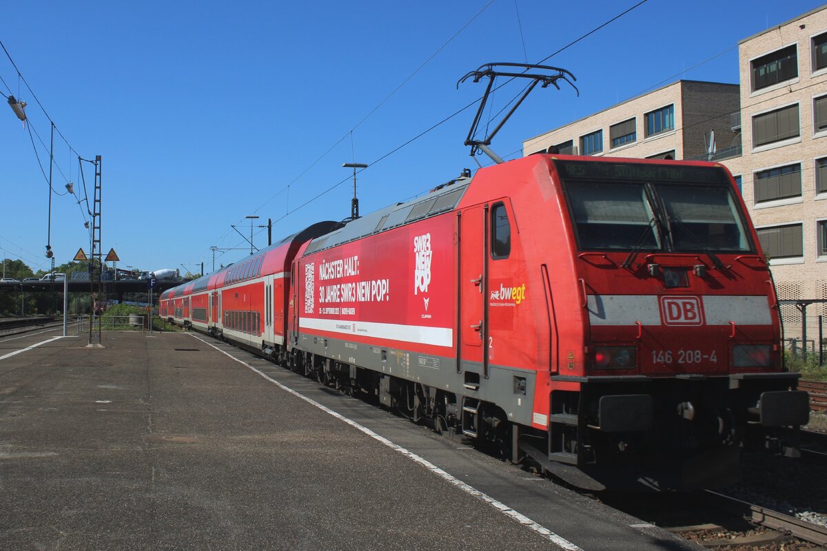 Am 19 September 2025 schiebt DB 146 208 ein RE nach Stuttgart Hbf aus Göppingen.