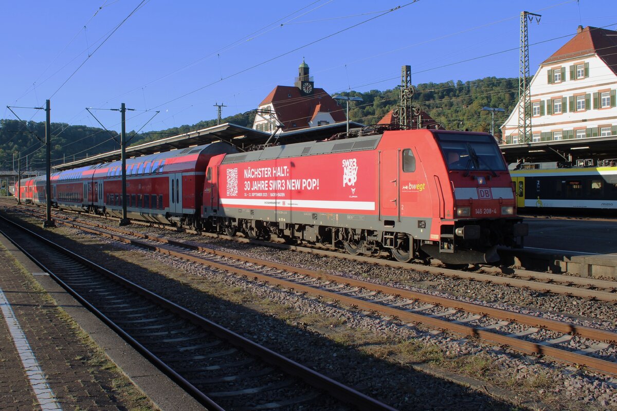 DB Regio 146 231 schiebt ein RE#-1 nach Karlsruhe Hbf aus Triberg aus am 29 Dezember 2024.