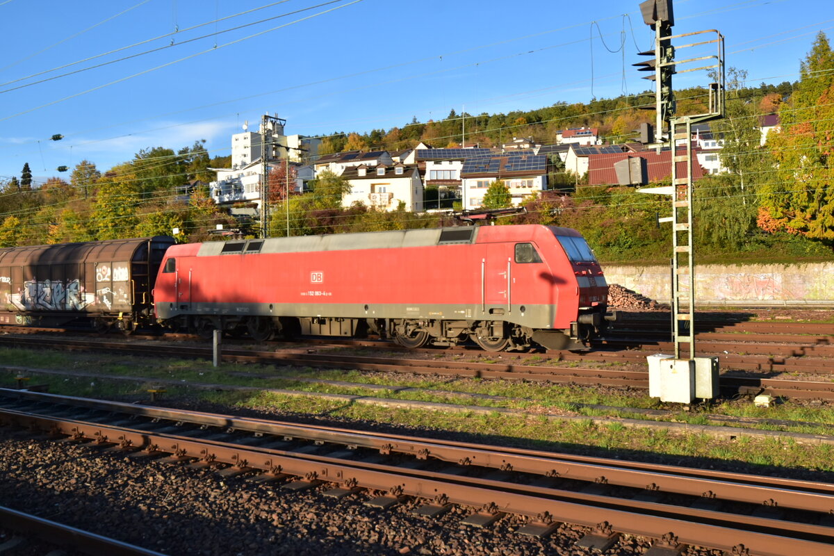 DB 152 155-8 mit Kisten Transport gen Hafen. HH-Harburg 29.10.2022