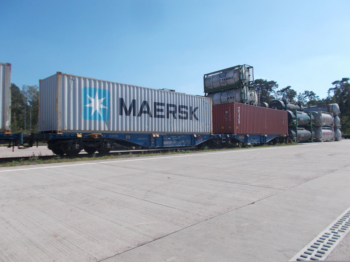 Containerwagen Bauart Sggmrss,am 24.August 2019,im Gewerbegebiet von Pinnow.