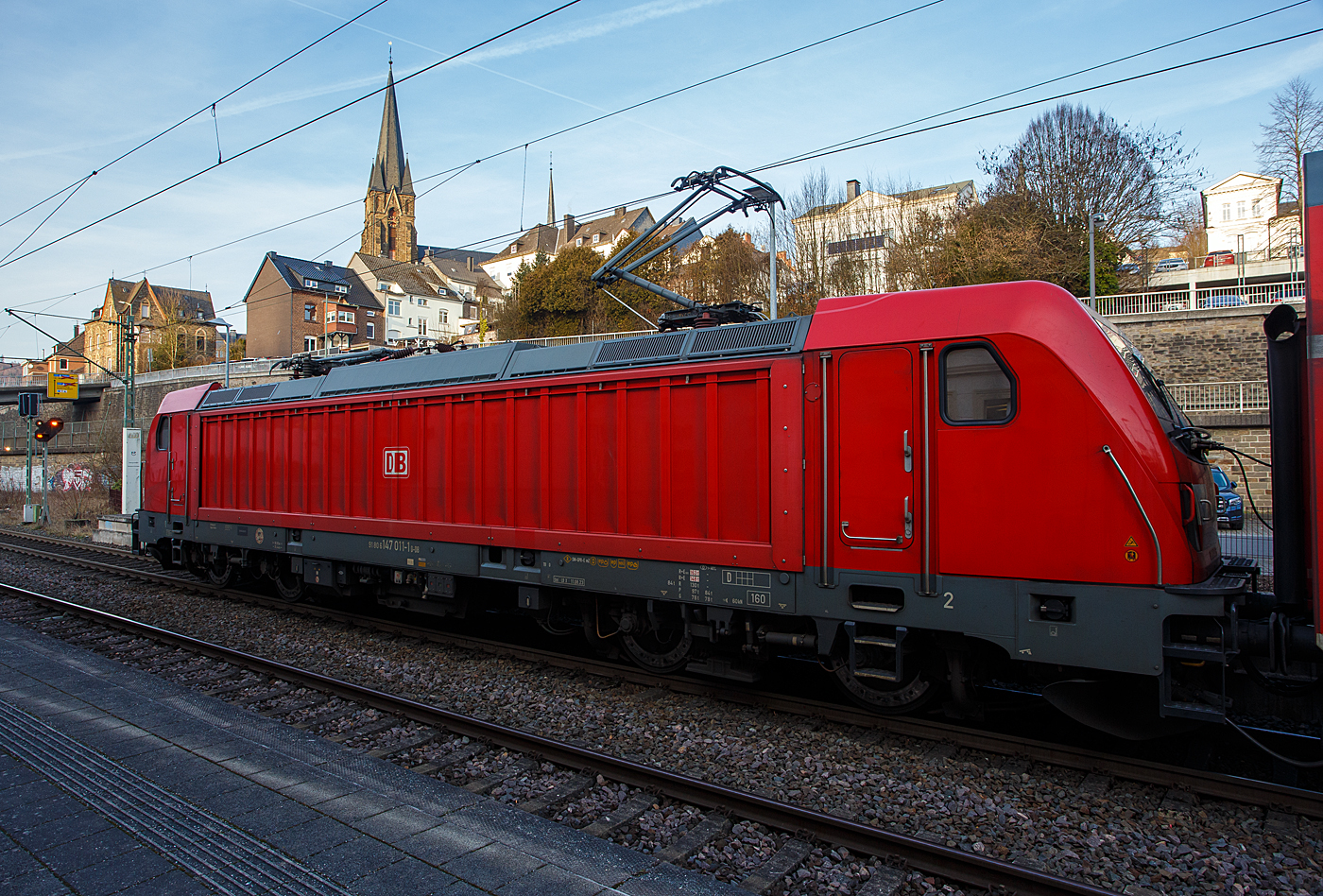 Motiv herbstlich verdeckt - Zwei gekuppelte 4-teilige Bombardier Talent 2 (BR 442 / 443) der DB Regio NRW erreichen bald (am 07.11.2015), als RE 9 (rsx - Rhein-Sieg-Express) Siegen - Köln - Aachen, den Bahnhof Betzdorf/Sieg.