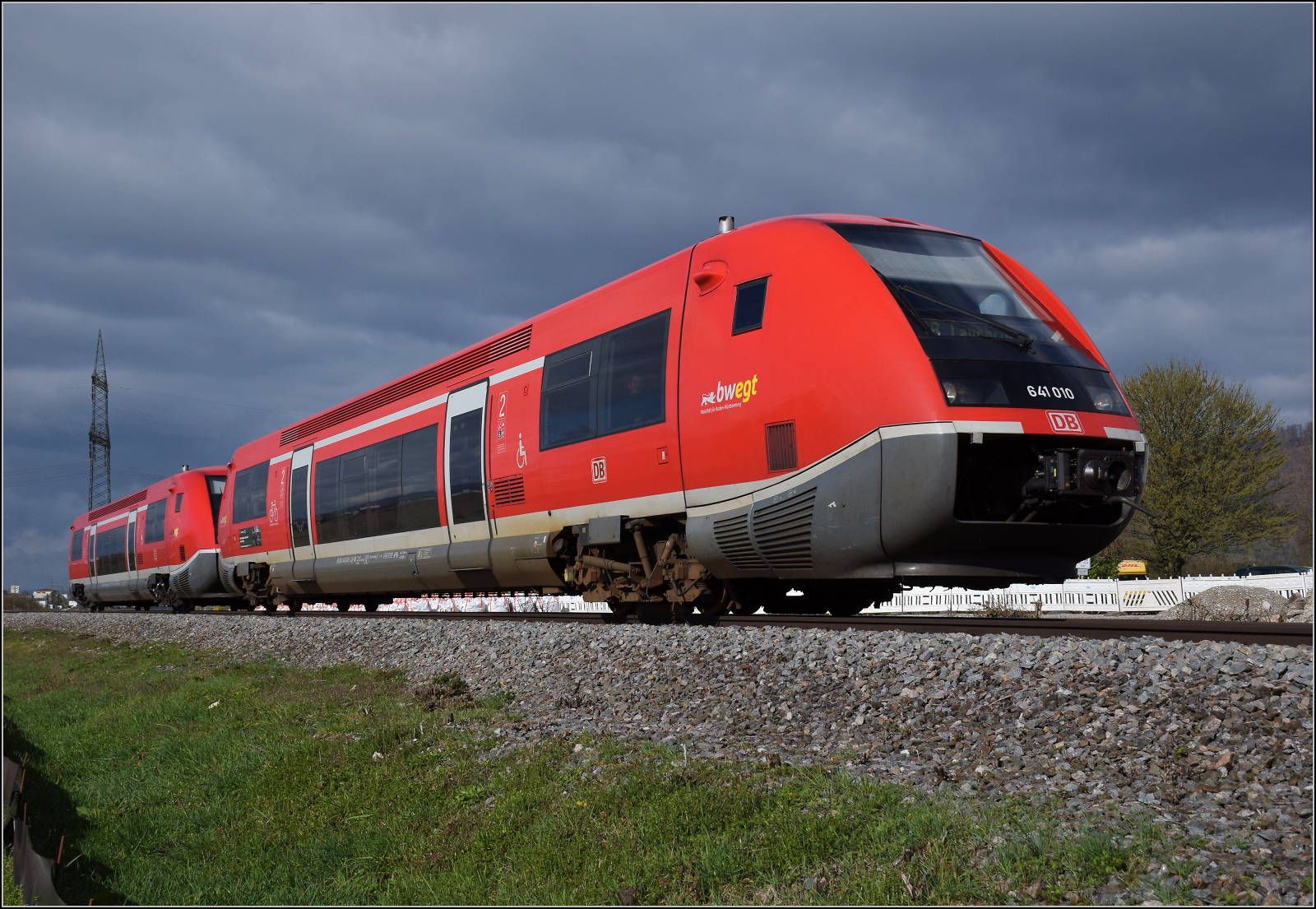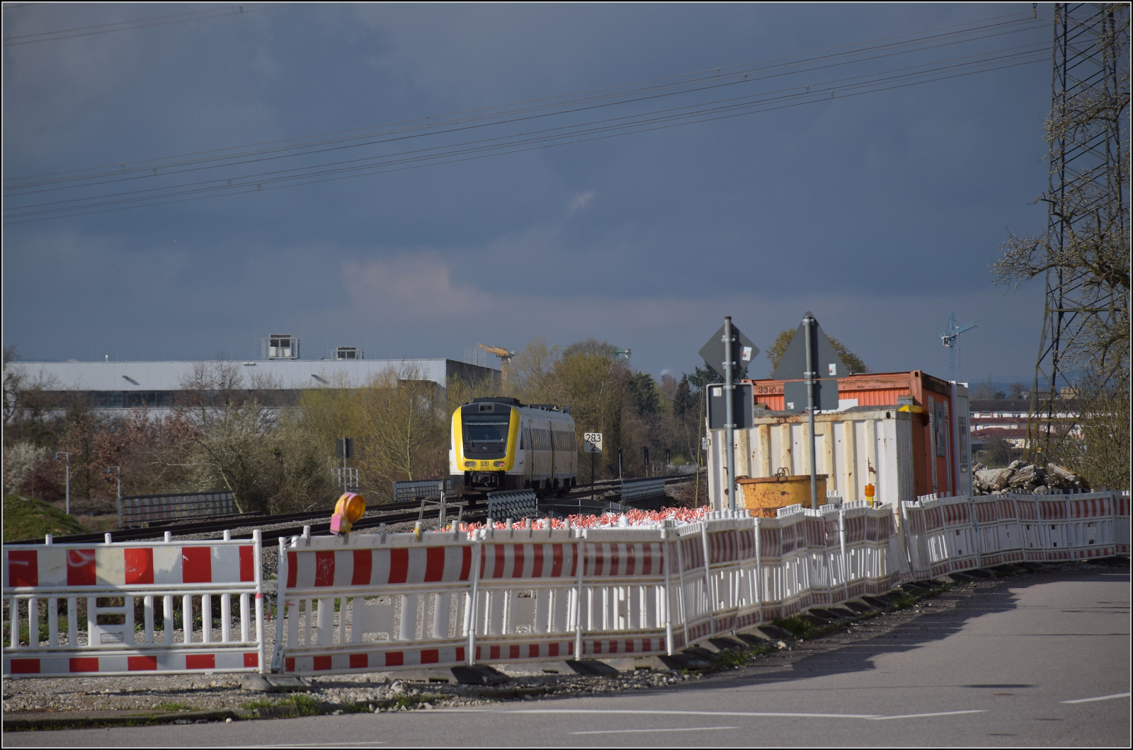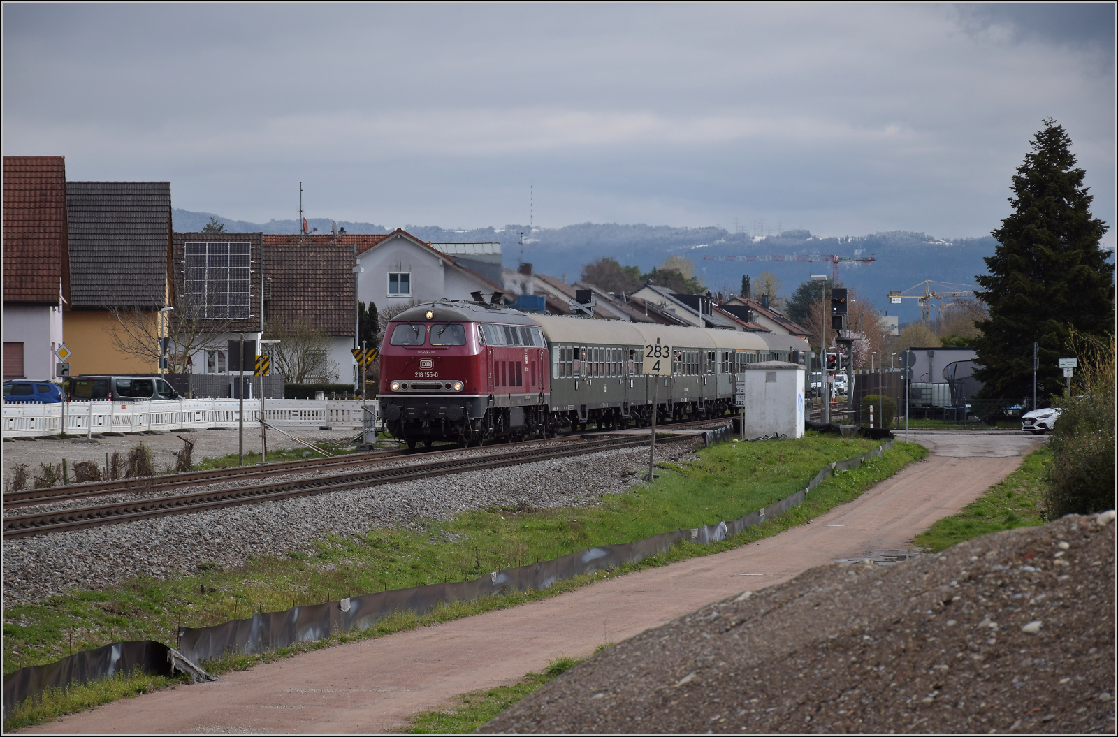 Ein Schweizer Zug in Deutschland, wenn auch nur noch für eine sehr kurze Zeit: Eine SBB Re 4/4 II ist mit einem IC von Singen nach Zürich bei Bietingen unterwegs und wird einige hundert Meter später die Grenze zur Schweiz erreichen.