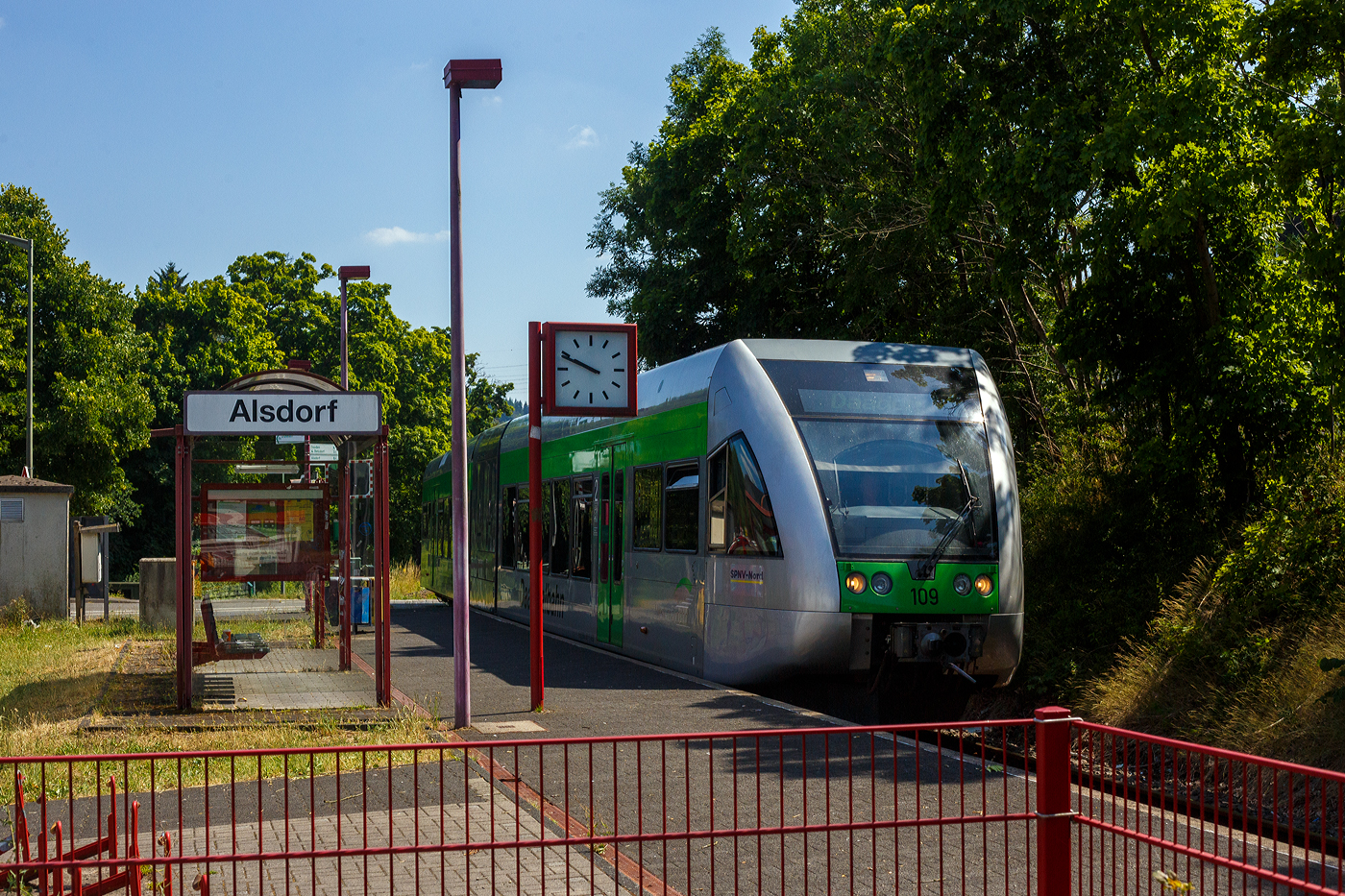 Der Triebwagen befährt die zweigleisige Siegstrecke. An der Weiche vor dem VT ist der Abzweig zum Kleinbahnhof und Rbf der Westerwaldbahn des Kreises Altenkirchen GmbH (WEBA). So sind die Gleisanlagen rechts vom VT der WEBA. Am Kleinbahnhof beginnt auch die Bahnstrecke Scheuerfeld–Bindweide-(Emmerzhausen).